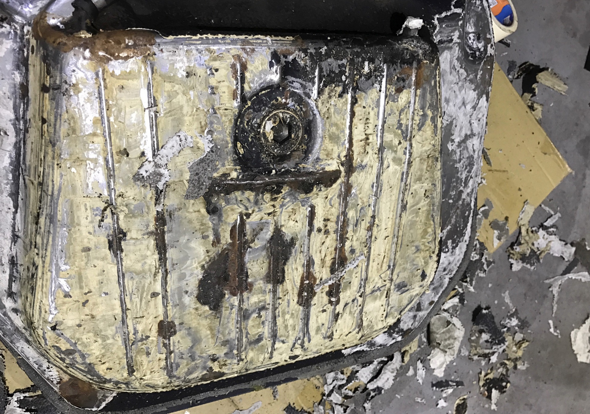 Ich habe meinen Tank komplett überholt. Entfernen des Unterbodenschutz, Entlacken, Entrosten, Grundieren, neuer Unterbodenschutz rauf und anschliessend lackieren. Das Ergebnis kann sich sehen lassen.